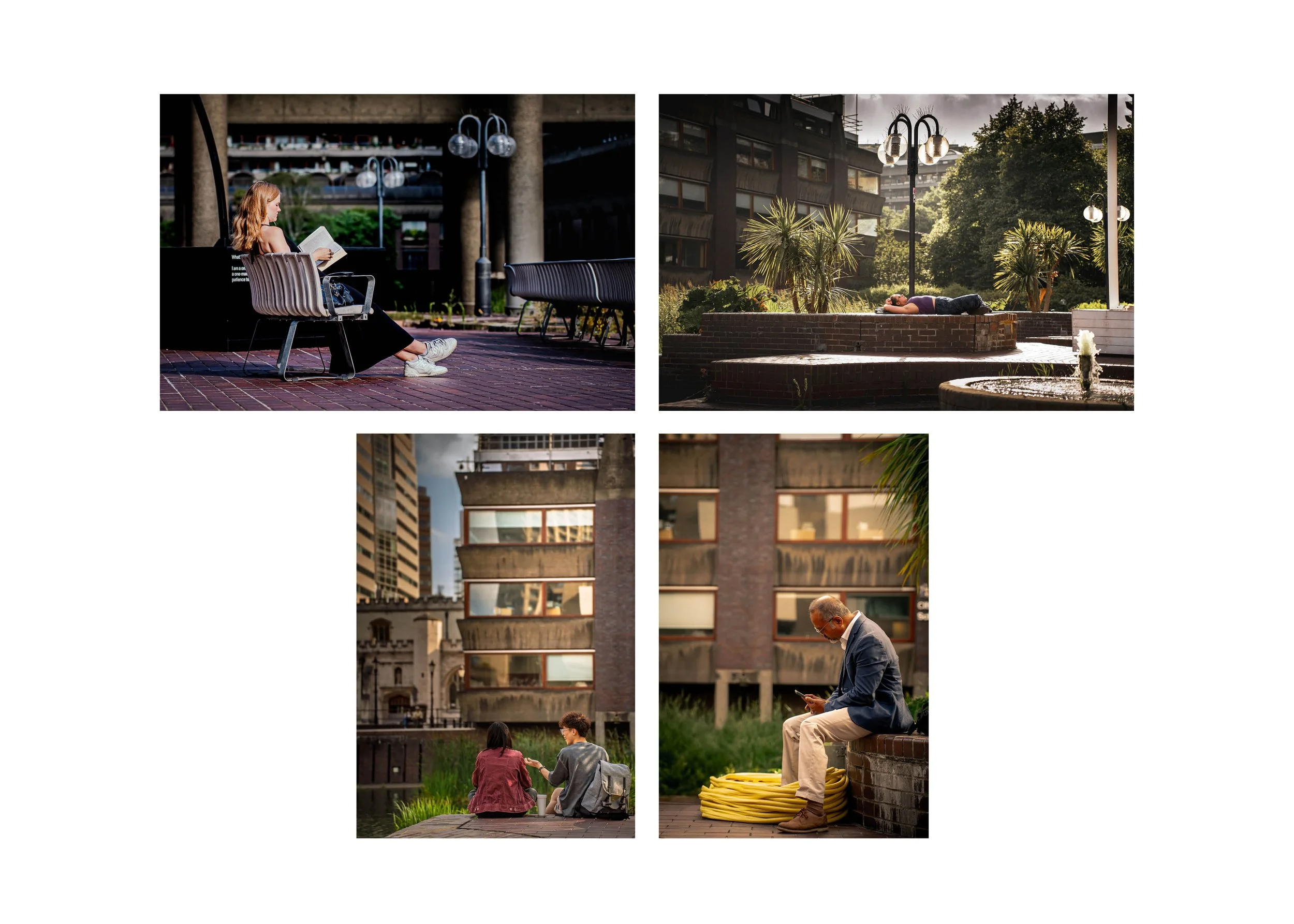 HIGHLY COMMENDED SERIES Barbican Estate by Nitin Shikotra All four images are from the Barbican estate, lakeside terrace. I named the Series ‘Unscripted Barbican Life’ Summer Reading, Summer Relaxing, Summer Conversations, Summer Working.
